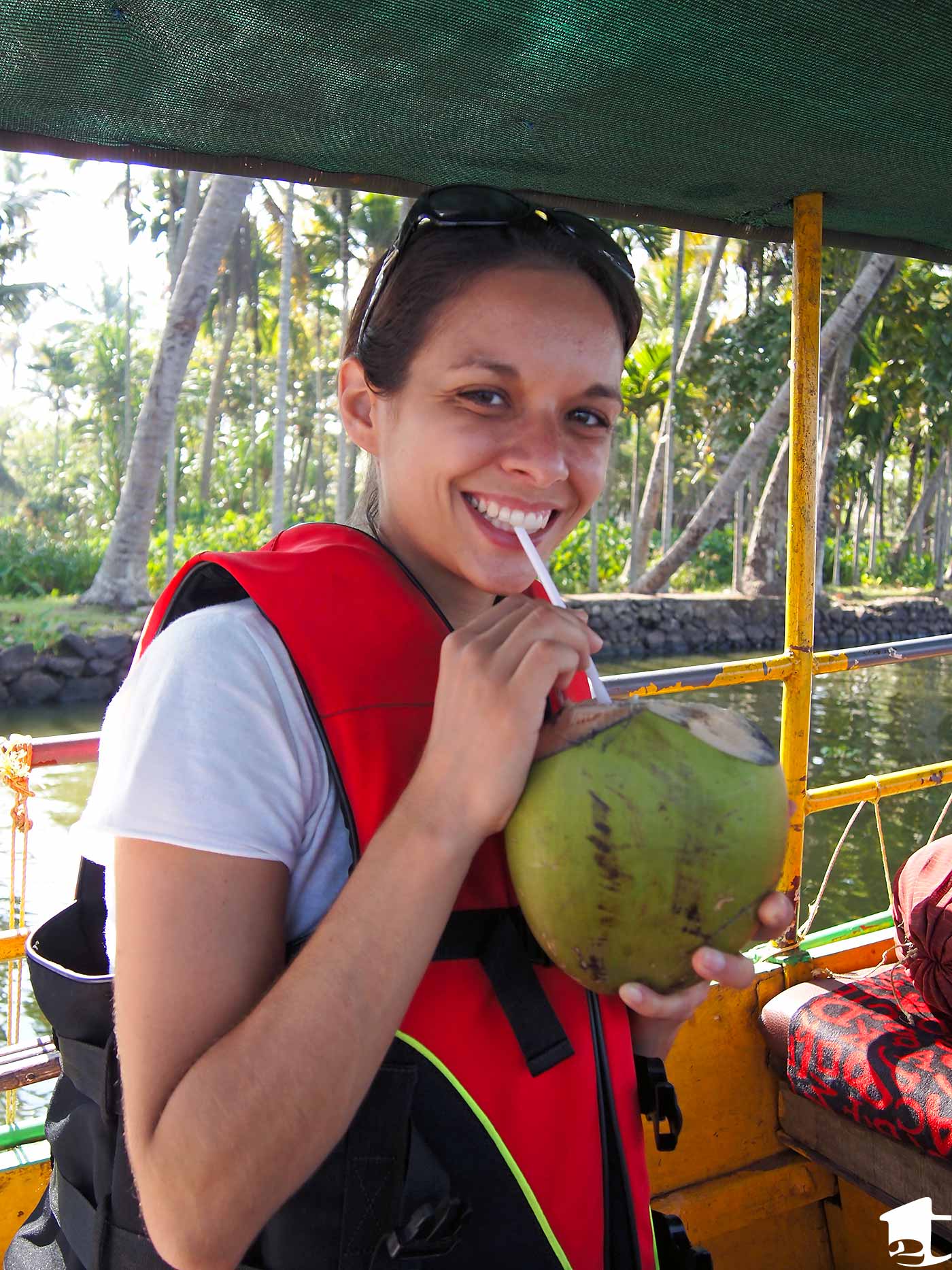 But you certainly can’t come to Alleppey without seeing the backwaters, so at the suggestion of a local, we jumped on board the public ferry. A roundtrip cruise through the larger backwater channels took two and a half hours. It was a great way to view the beautiful landscape and watch village life unfold as we pulled over to pick up passengers at various ferry stops. But as we cruised along the larger waterways with other ferries and houseboats, we noticed small canals branching off. It reminded us of walking through a medina in Morocco: Maybe there is a main market street, but most of the local treasures are hidden along the snaking alleyways.