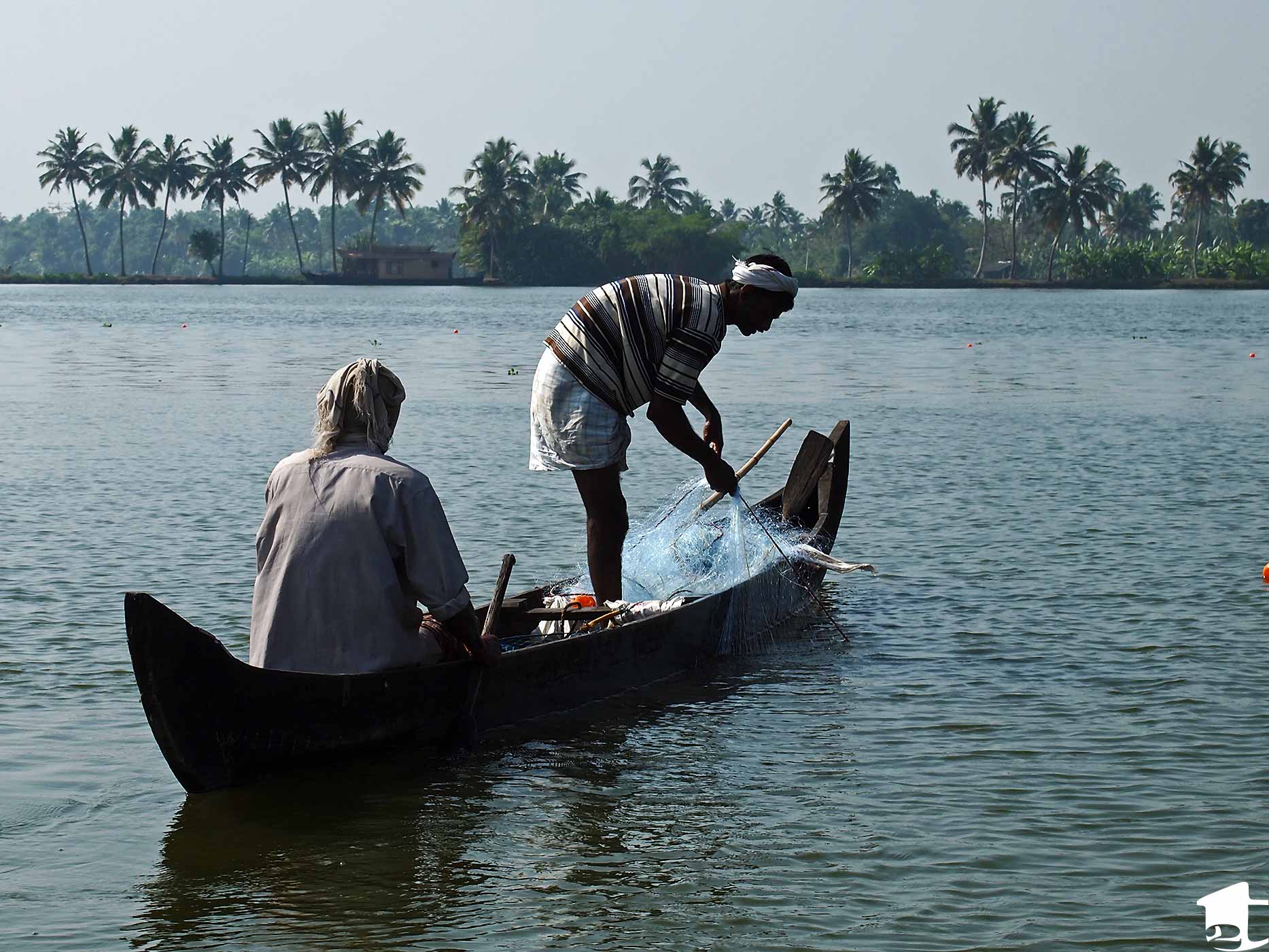 - Locals using a fishing net to catch fish.