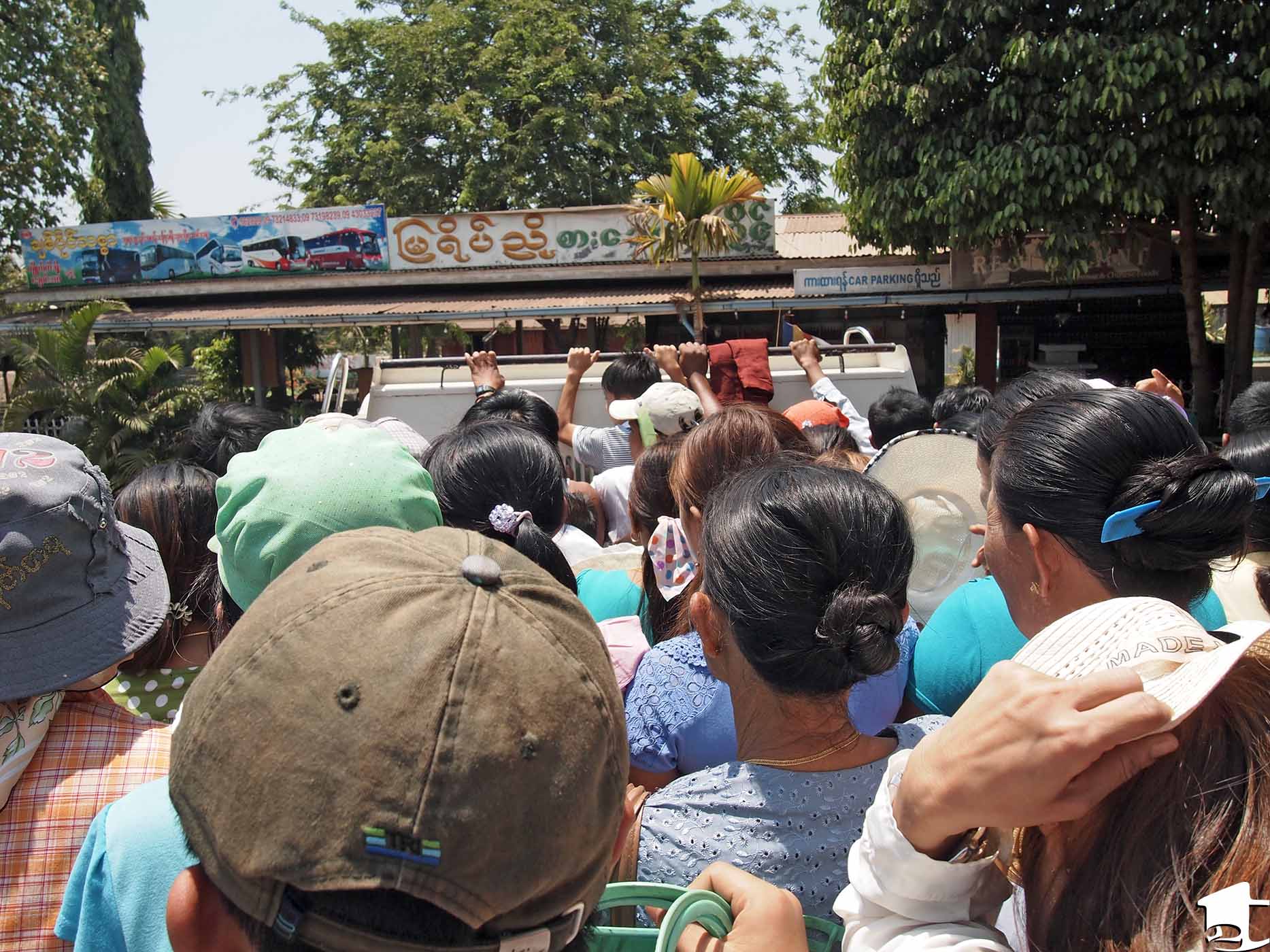 The full price bought us a 45-minute ride to remember and bruises that a couple weeks later are finally disappearing. Your allocated sitting spot would probably best fit a kindergartener, and the space for your legs is only comfortable for small children. Tara even felt a little cramped, and I thought I had accidentally joined Cirque du Soilel. The ride ended up being one of the best, worst experiences in Myanmar. The driving had us jostling off our seats (we ended getting the last two seats on the truck and every bounce felt like I was going to be tossed from a bucking bronco. Eight seconds, cowboys? Try 45 minutes!). To make matters worse, a child projectile vomited on the guy in front of him near us. Apparently this is common enough that it might be a good idea to bring a change of clothes. Seriously.