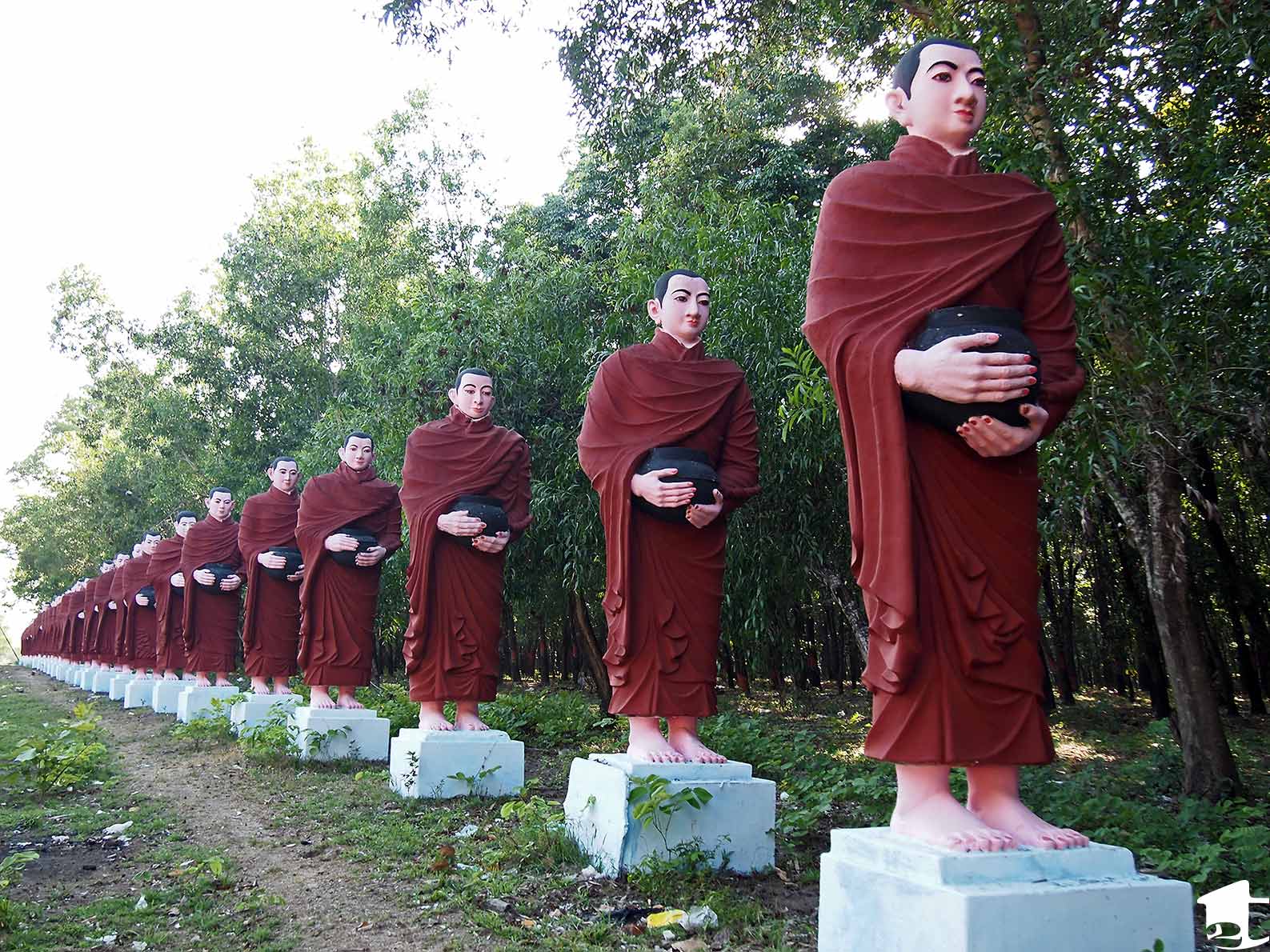 - Hundreds of monk statues line the entrance to Win Sein Taw Ya.