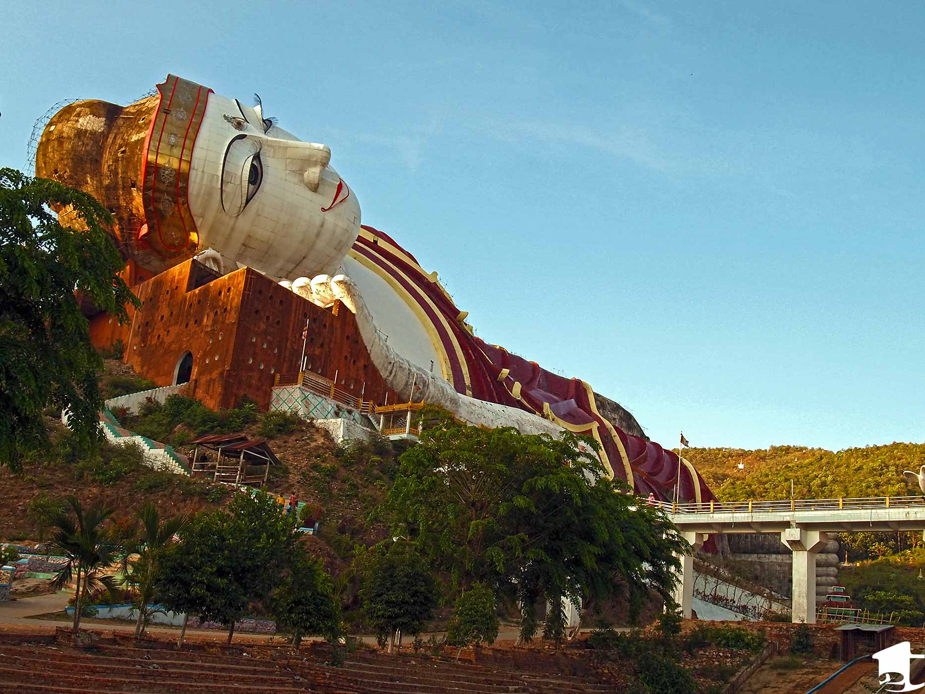 Need to know: Each attraction is a sacred place, so you must take your shoes off at the entrance. Be careful walking inside the Buddha as there are crumbled pieces of concrete and other materials on the ground as a result of ongoing construction. The stairs leading up Kyauktalon Taung are also litter with rocks and pebbles. Just watch your step.
