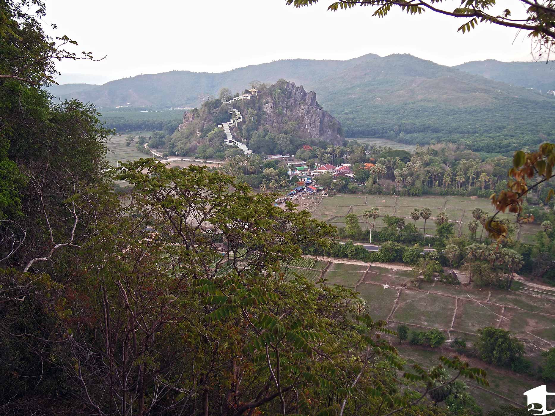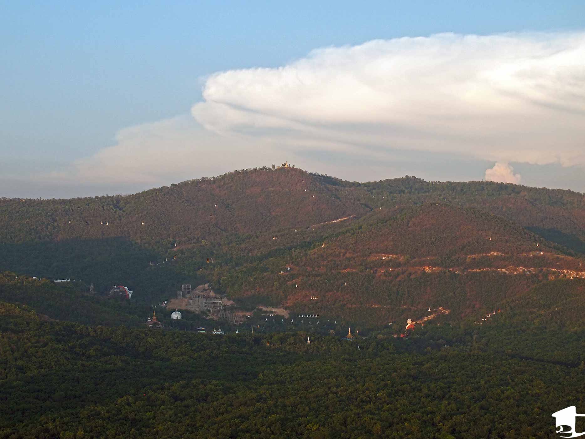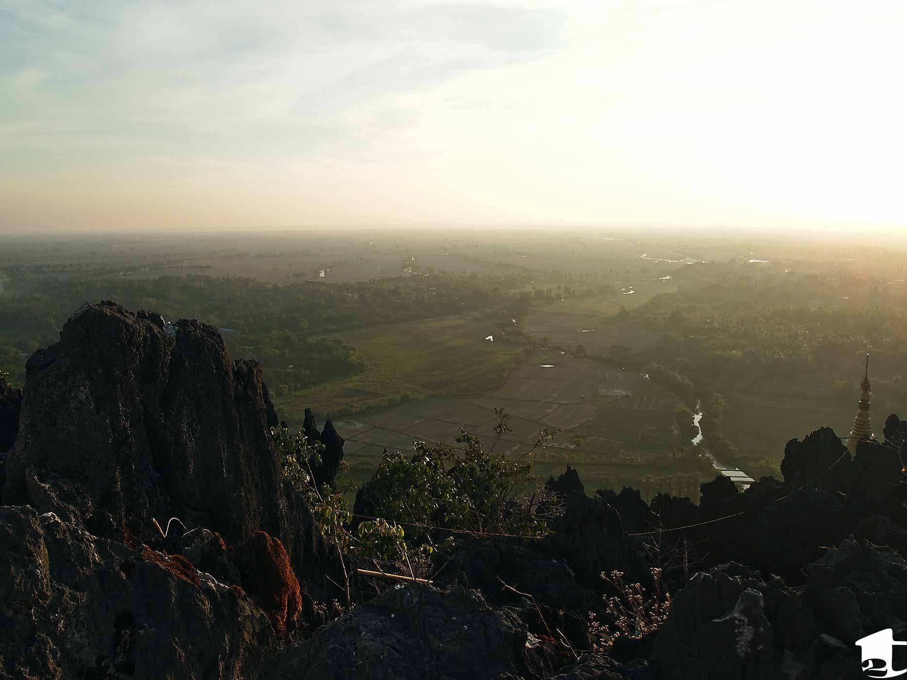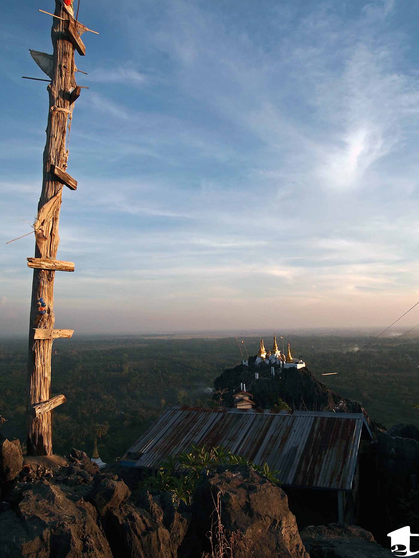 - View of the Hindu Temple from half-way up Kyauktalon Taung.