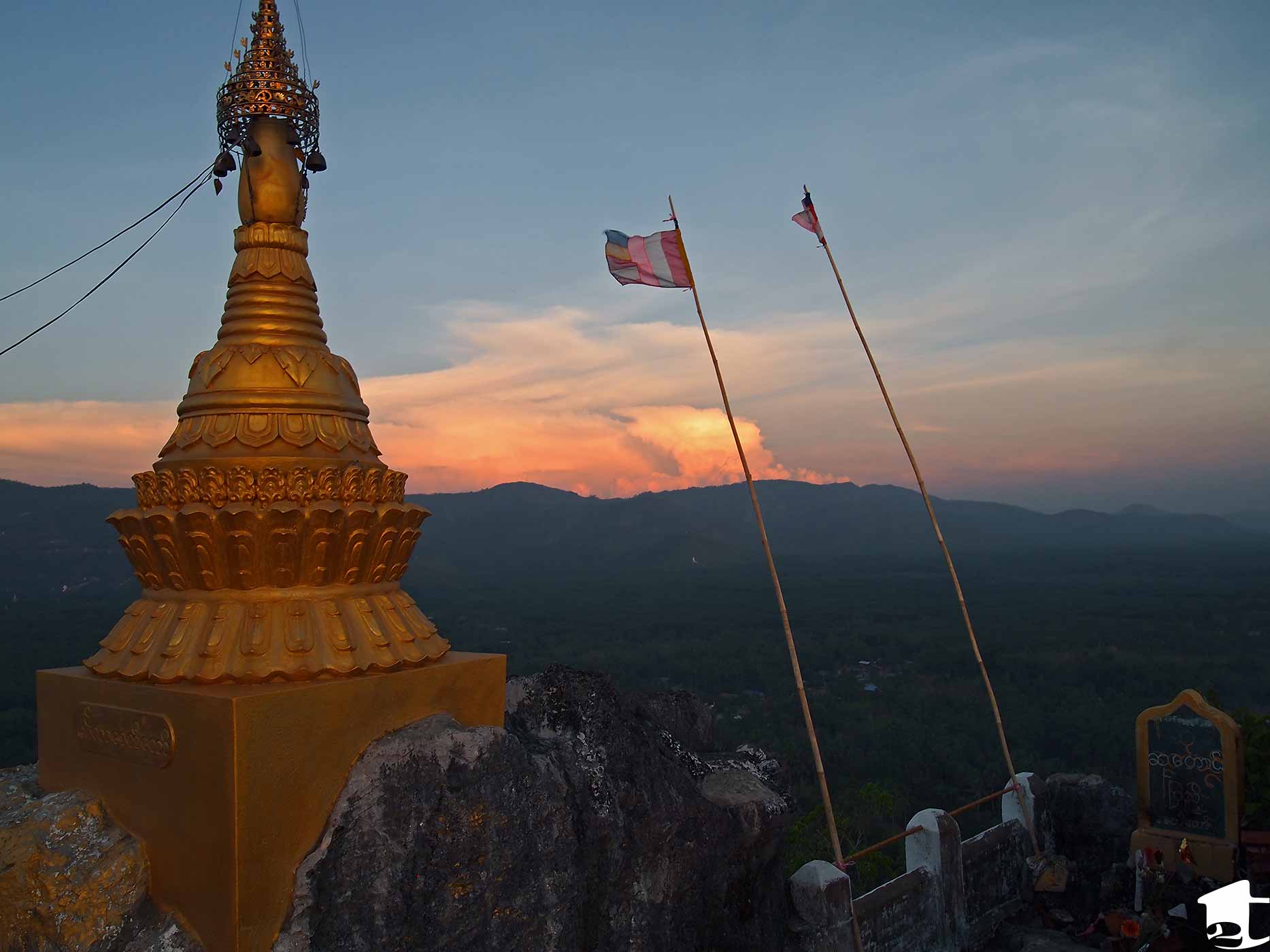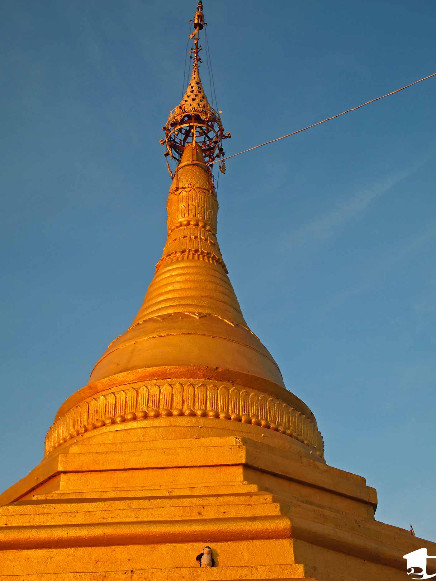 - Do you see Tiny, our traveling penguin, on this zedi atop Kyauktalon Taung?