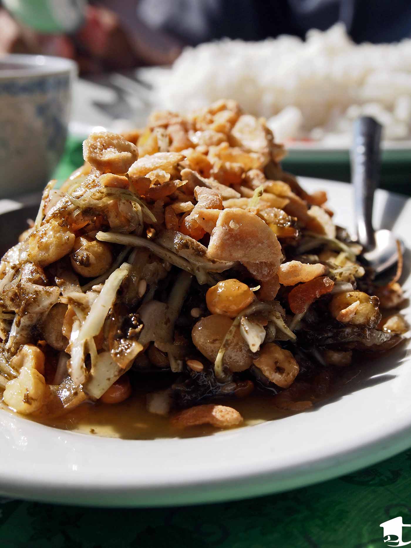 Least spent on dinner: 2,000MMK for two rice plates, two free soups, free fresh veggies, one bean curd with sprouts, one chickpeas with potato curry, 10 free side dishes with toppings, two free teas and three free desert candies