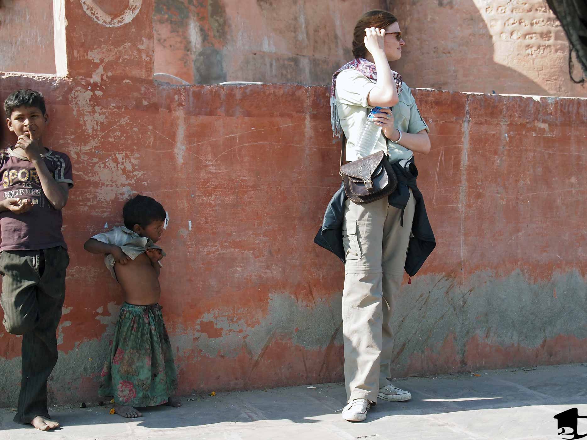 In Bikaner, India, these children were asking this woman for money, then harassing her after she said no and tried to ignore them.